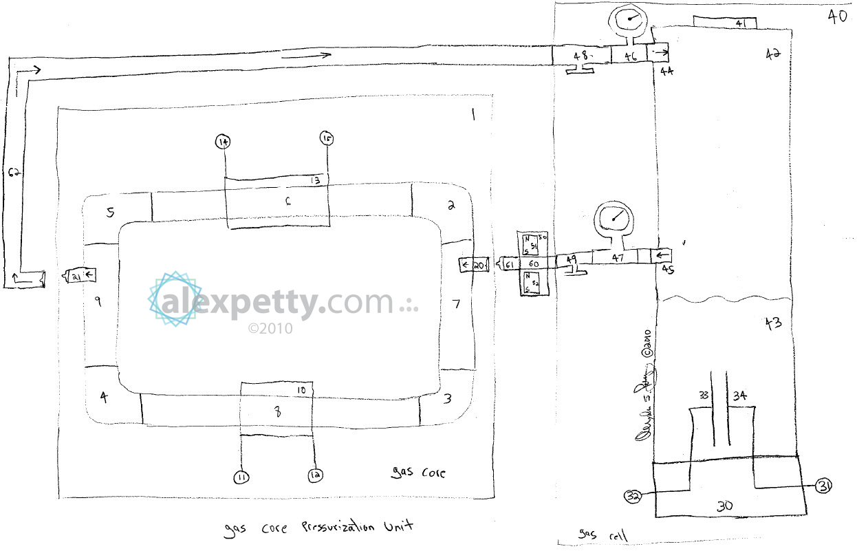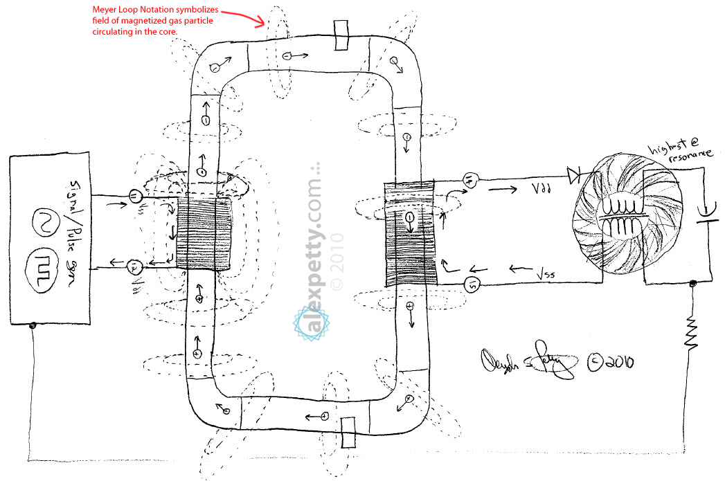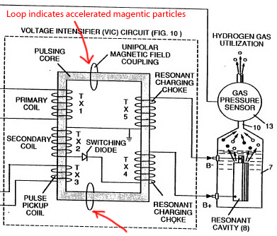 In these diagrams Meyer refers to the gas-filled pulsing core and its unipolar magnetic field interaction.
