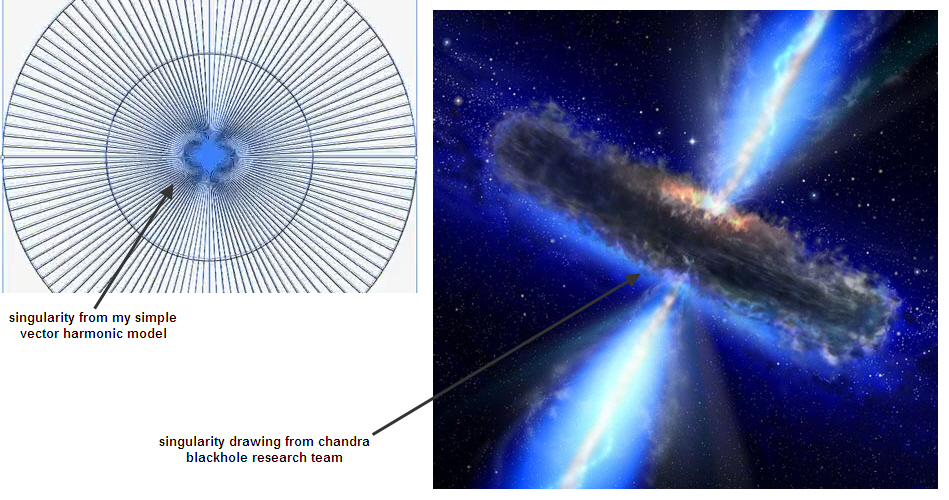 At that moment the geometry briefly collapses into a singular point. The surrounding pattern resembles the type of field often associated with a black hole.