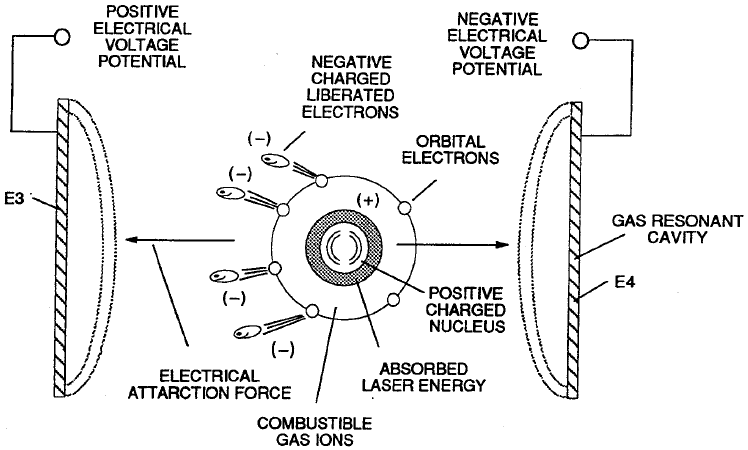 At this stage the atoms of the water molecule are taken to a sub-critical state. Electrons are extracted from the atoms while photon energy is introduced, raising the atoms to a highly energized condition.
