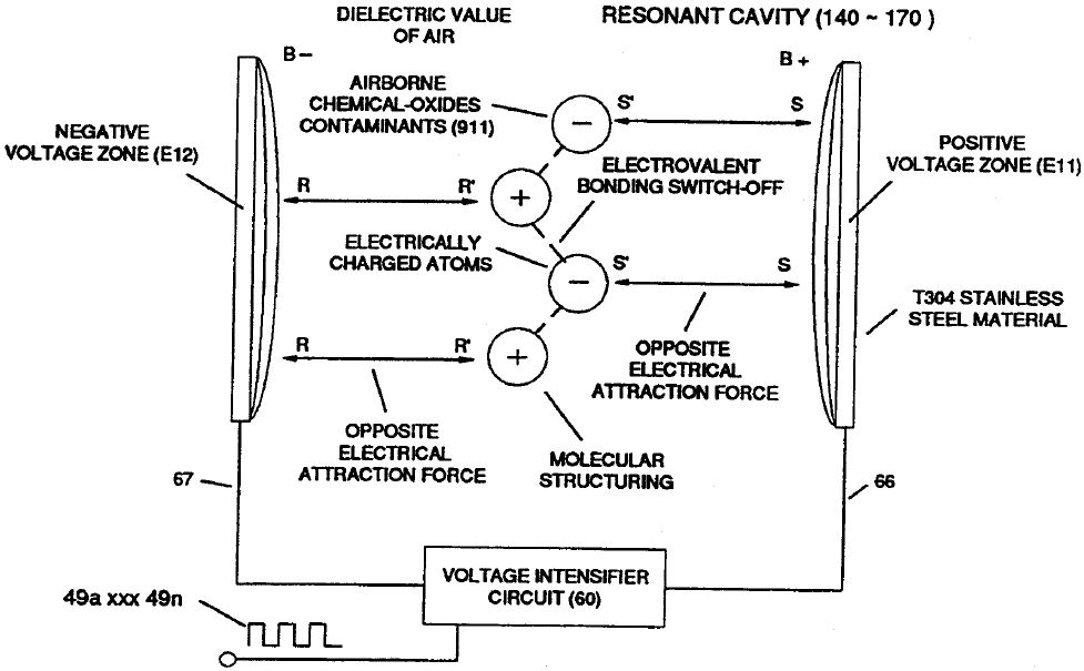 When the circuit is tuned properly, voltage across the plates increases while current flow is restricted. This allows the electrical polarization process to separate the water molecule in a purely physical manner.