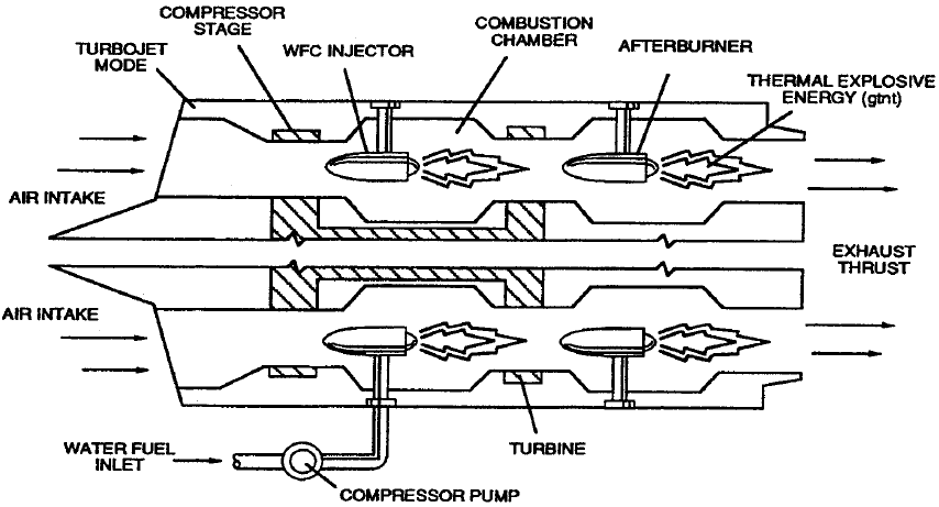 Jet engines can also operate using water fuel technology by electronically controlling the burn rate to match combustion chamber conditions.