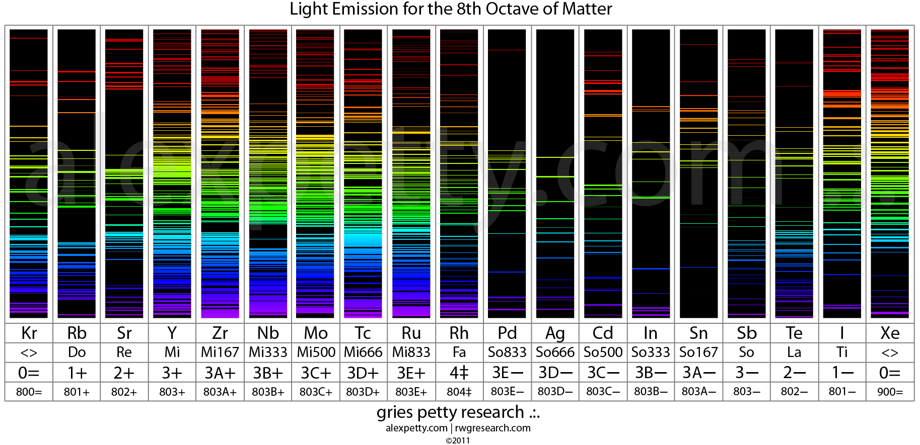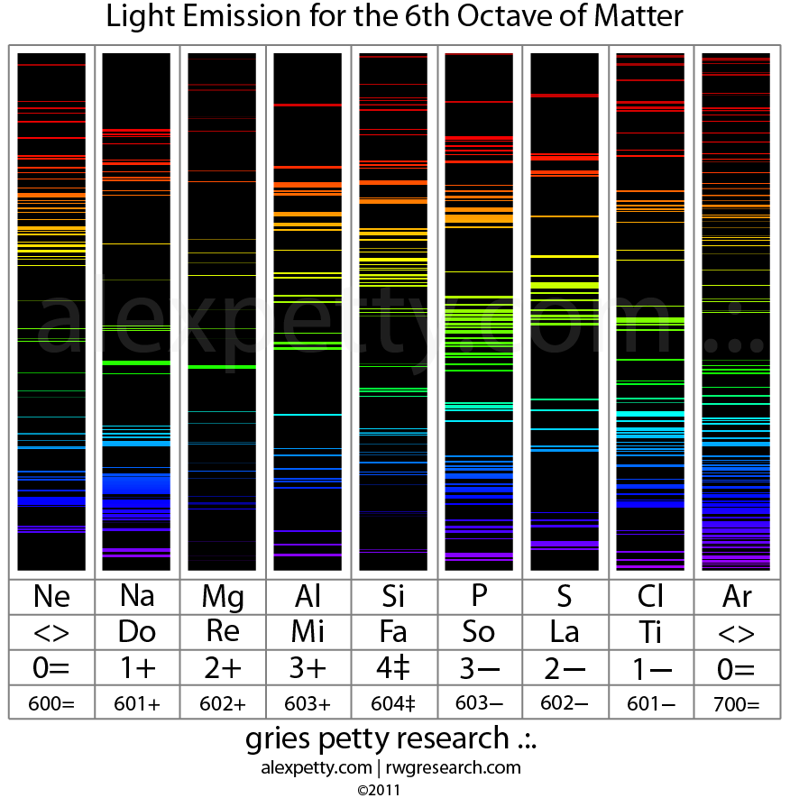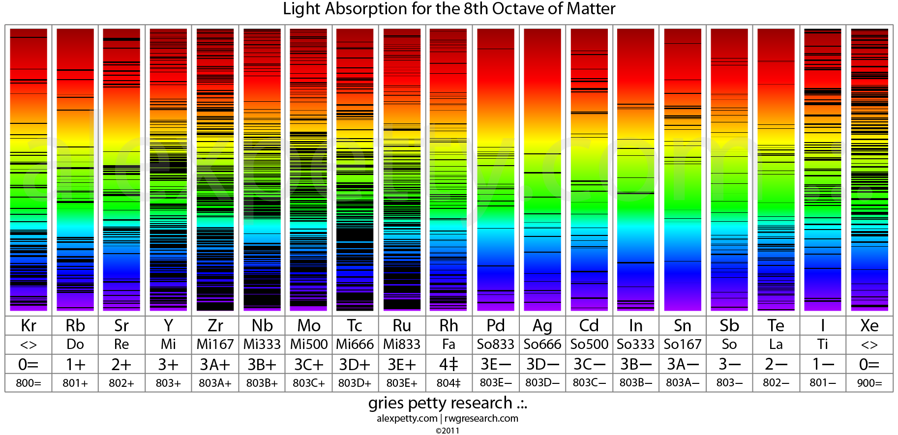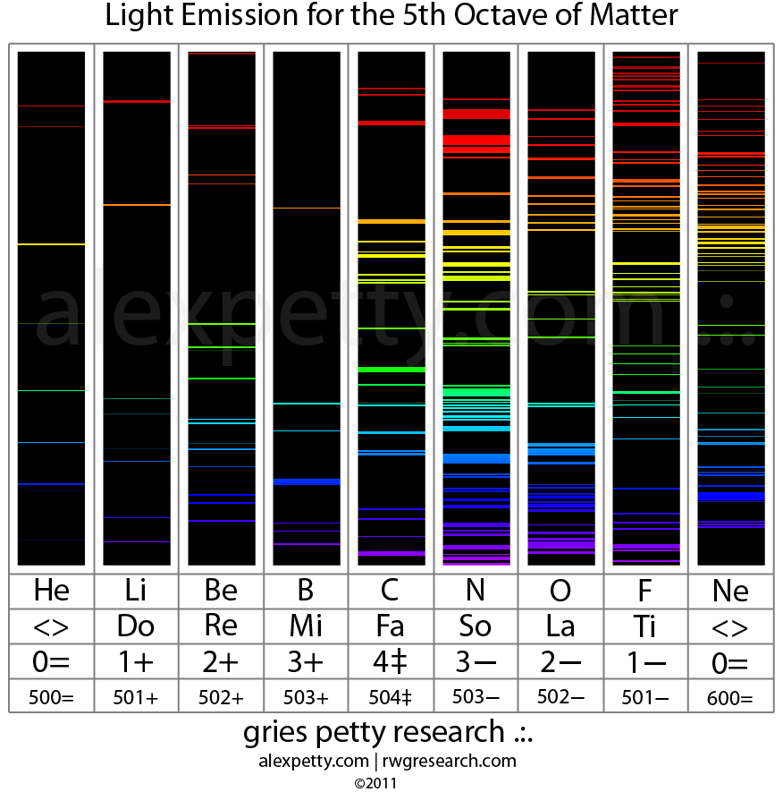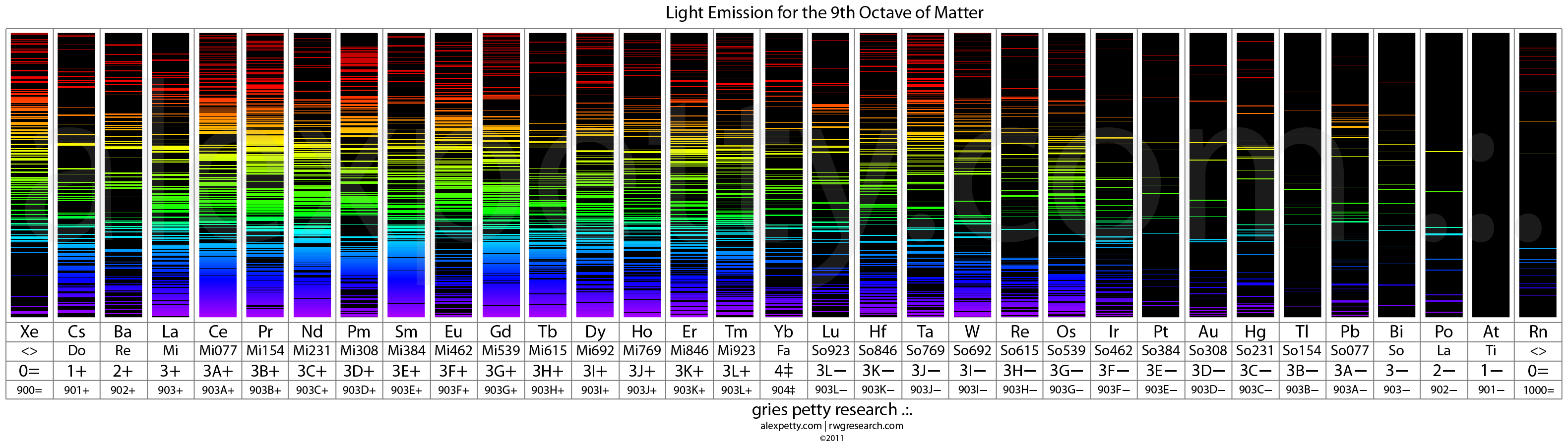 In this sense the elements of the periodic table can be interpreted as tones within a very high frequency octave of light.