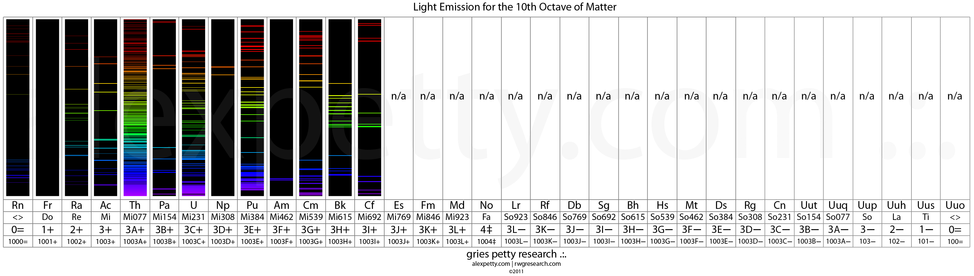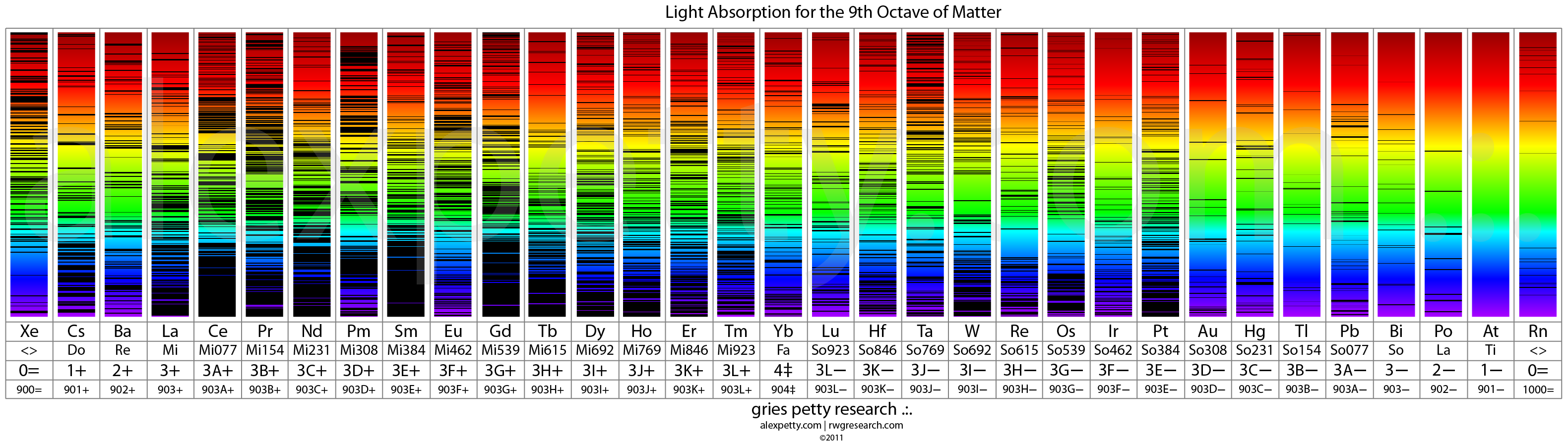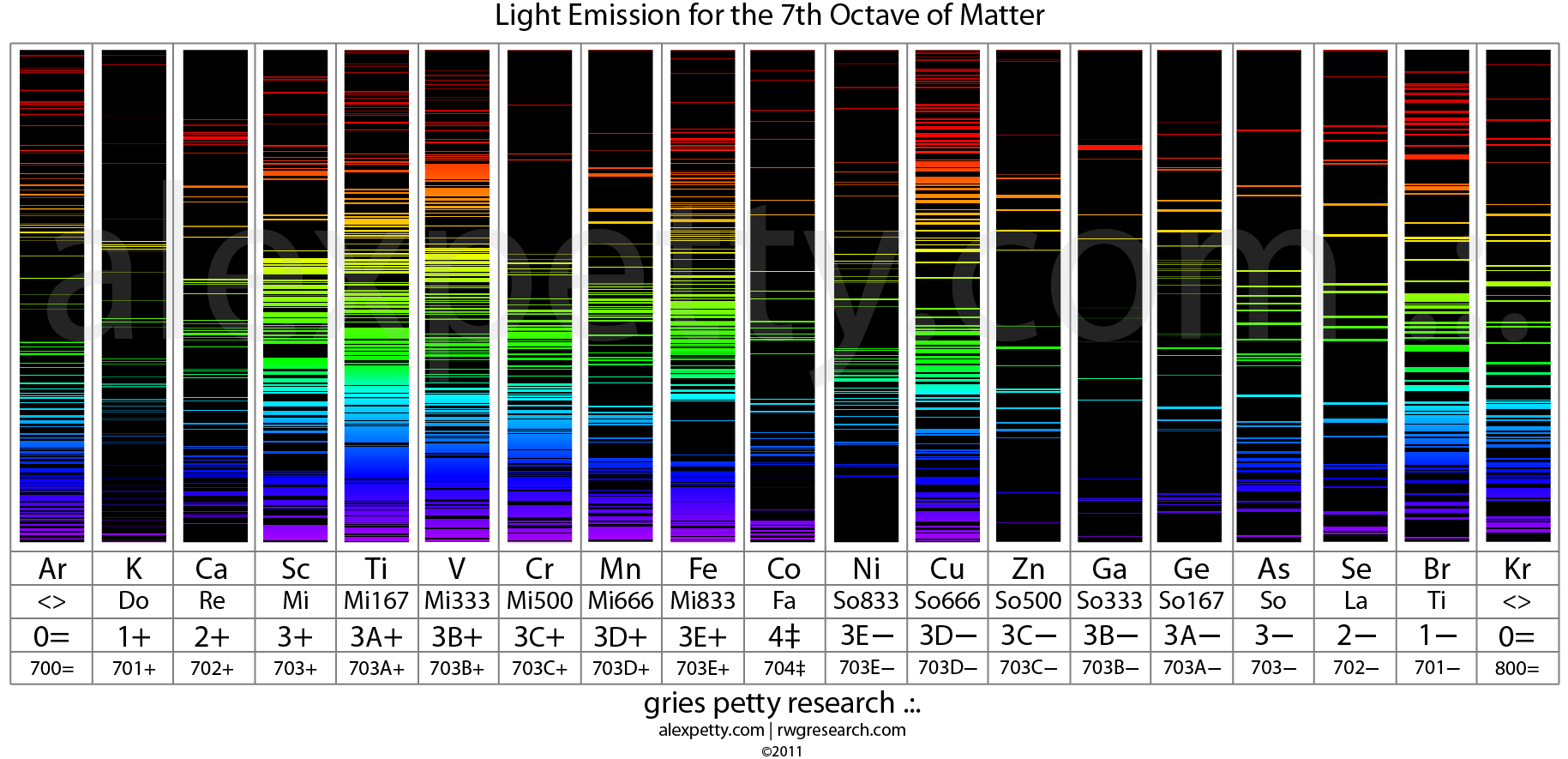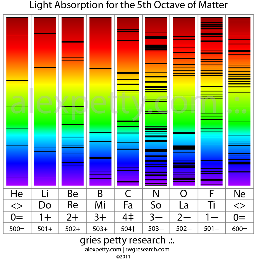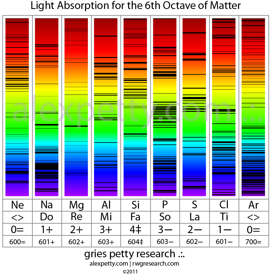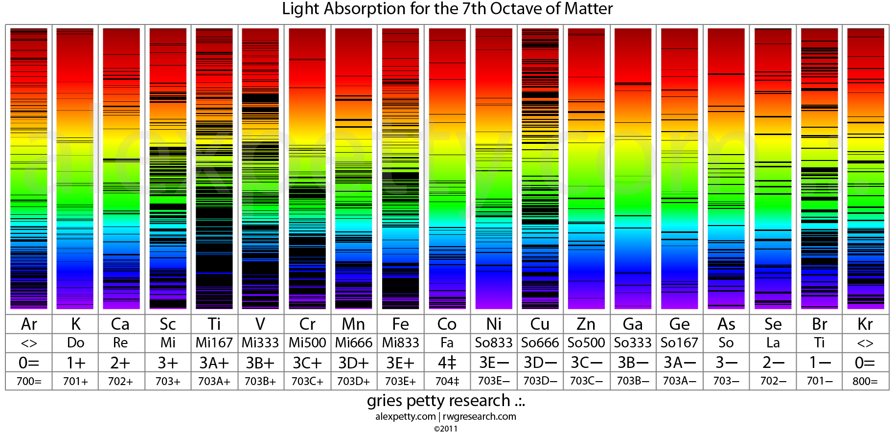 In this sense the elements of the periodic table can be interpreted as tones within a very high frequency octave of light.