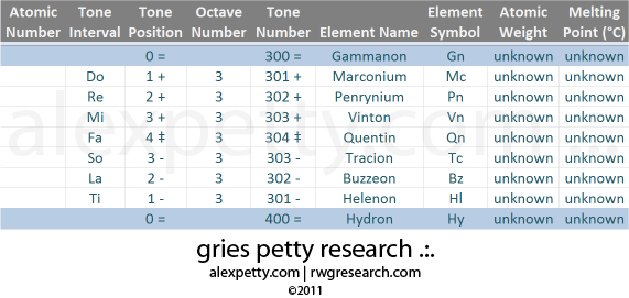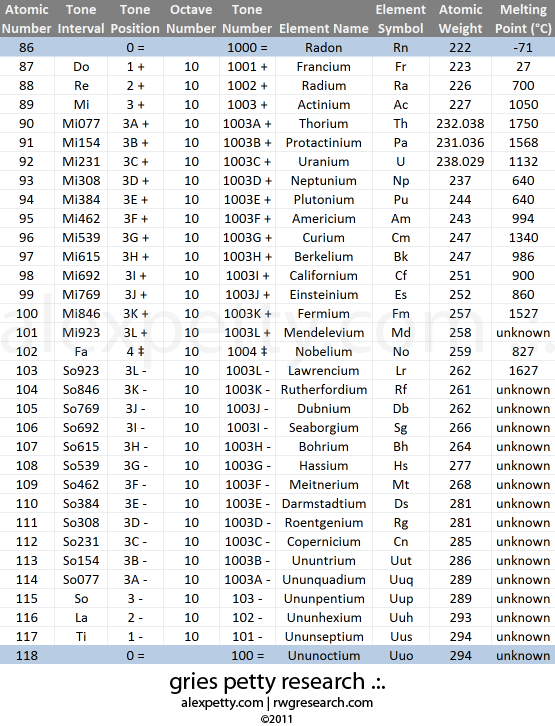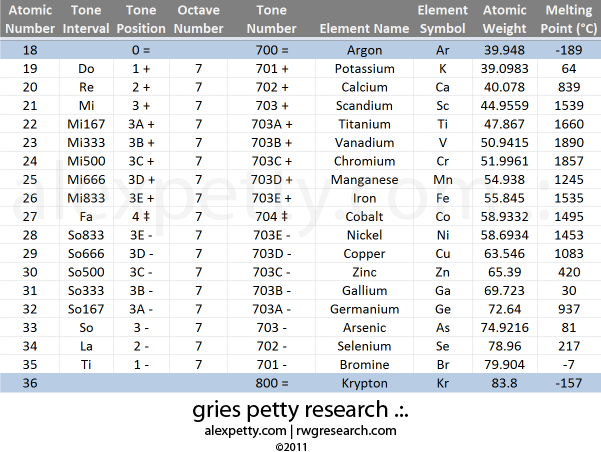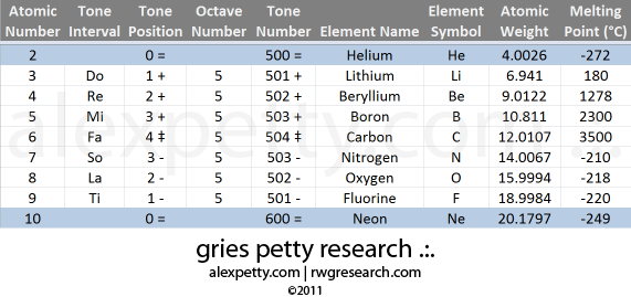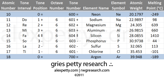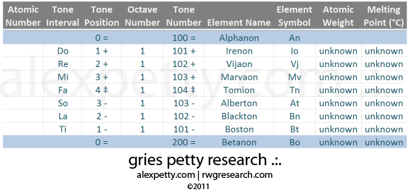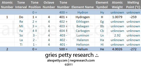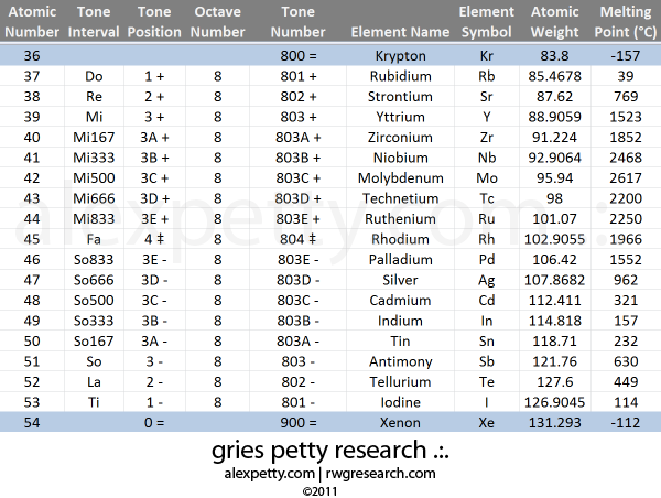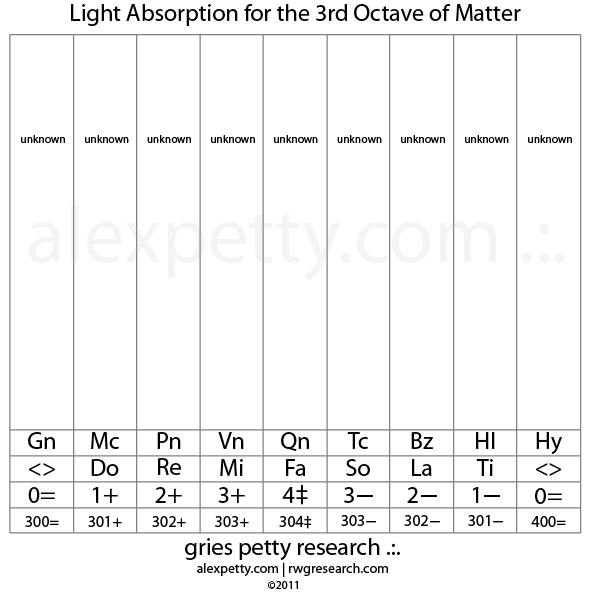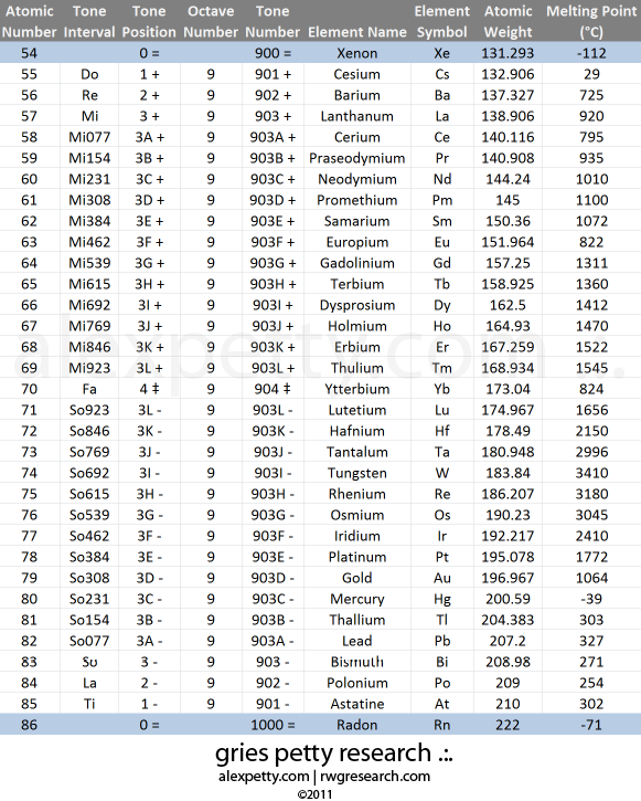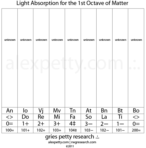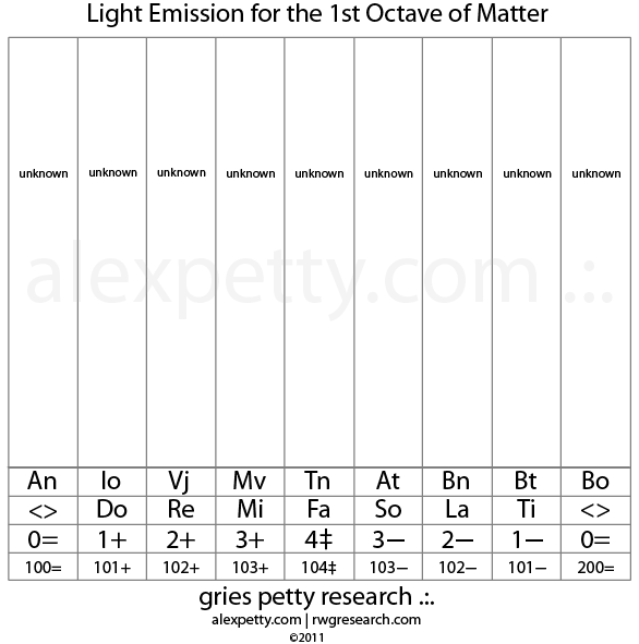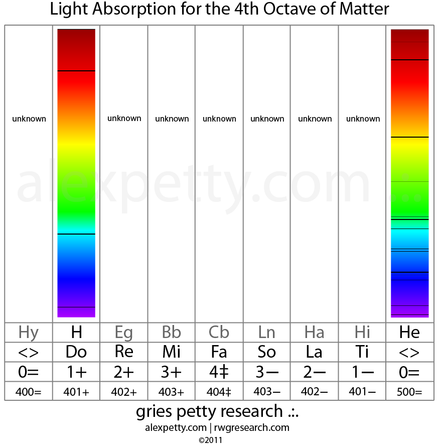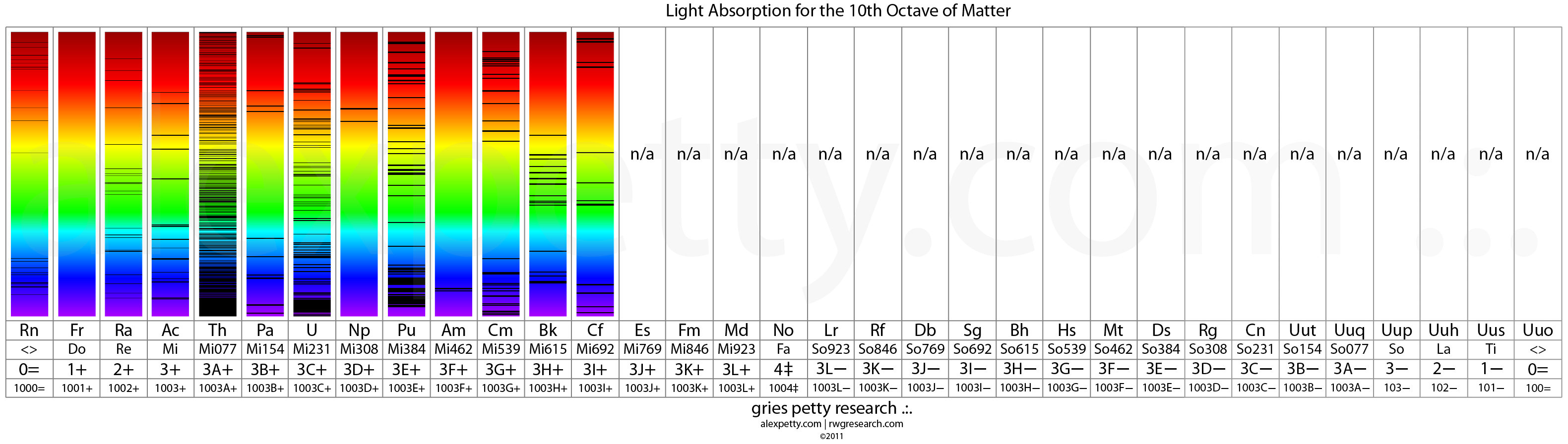 In this sense the elements of the periodic table can be interpreted as tones within a very high frequency octave of light.