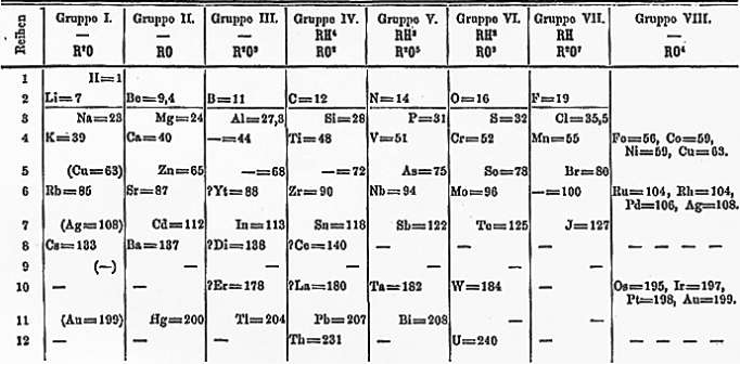 In 1871 Mendeleev organized these elements into a table now well known as the Periodic Table of the Elements.