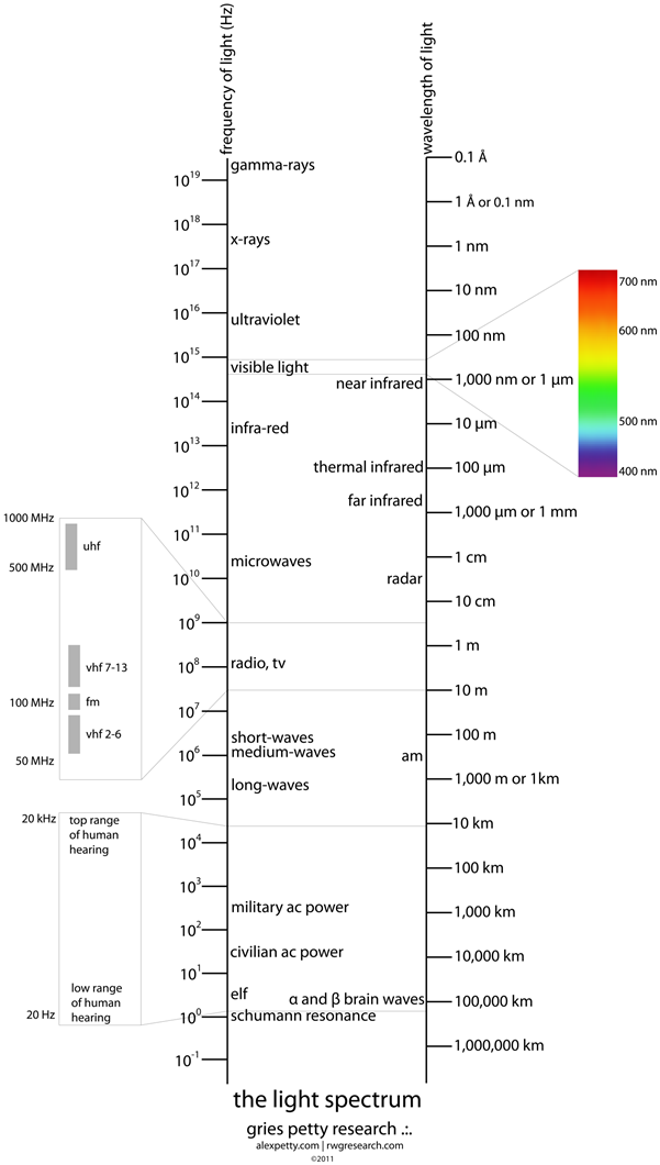 Beyond this narrow band lie vast ranges of electromagnetic activity. Radio waves, microwaves, infrared, ultraviolet, X-rays, and gamma radiation all belong to the same continuum.