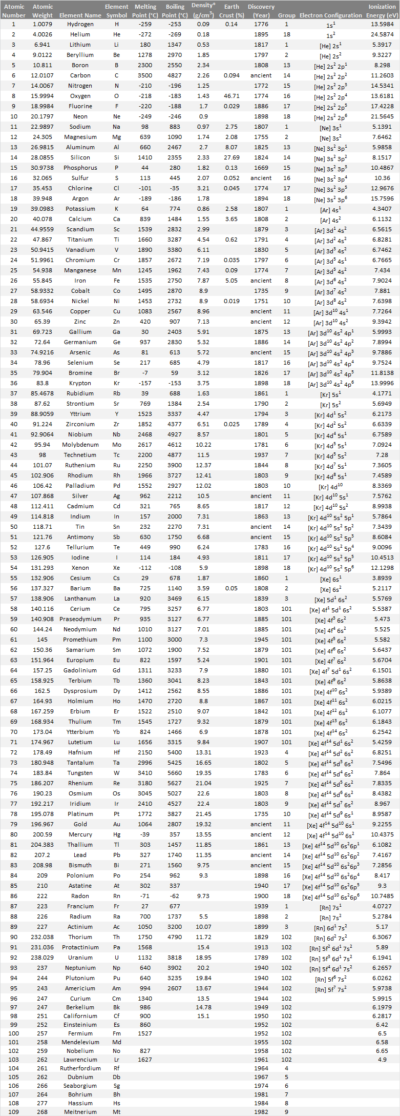 To approach this question, let us first consider a listing of all the known elements that make up the physical universe.